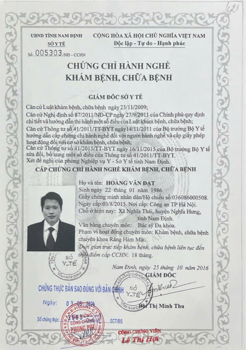 Giấy phép hành nghề đội nghĩ bác sĩ tại