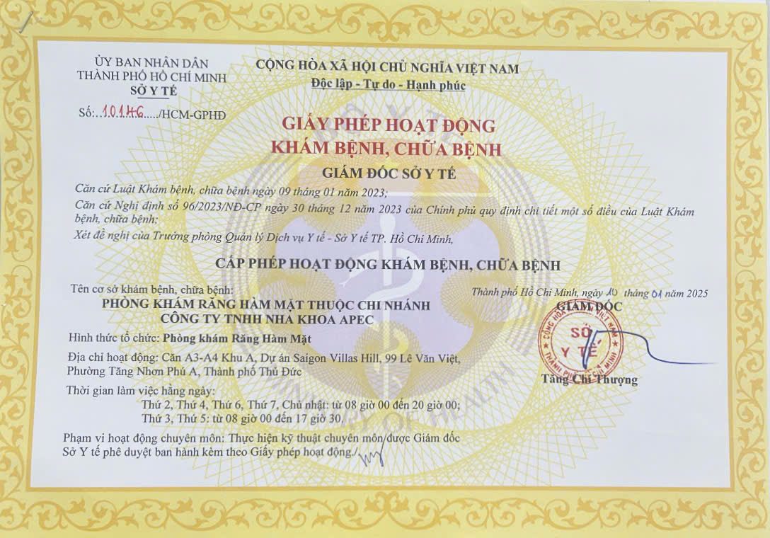 Giấy phép hoạt động nha khoa Apec