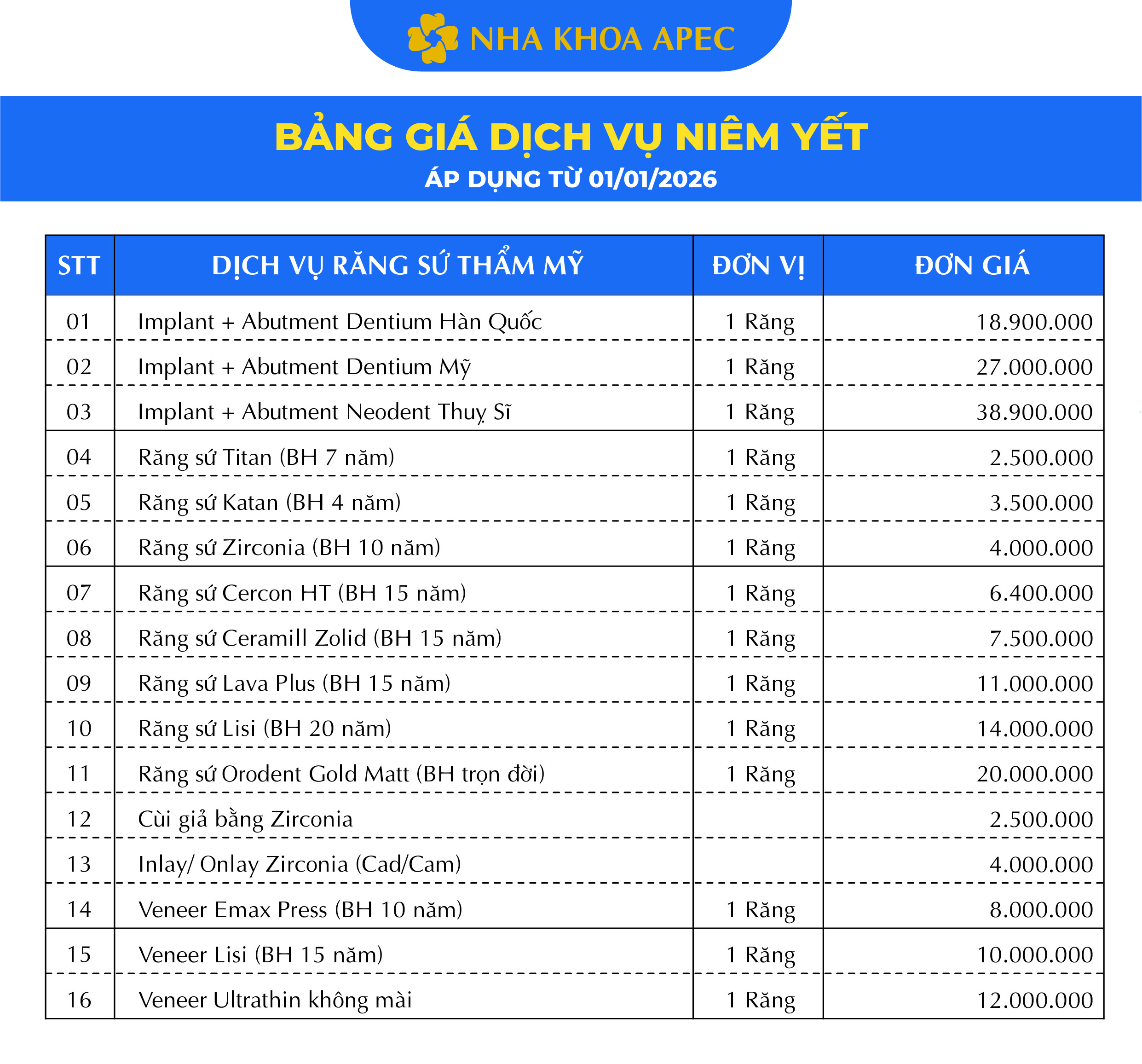 Bảo hành răng sứ từ 10 năm – trọn đời